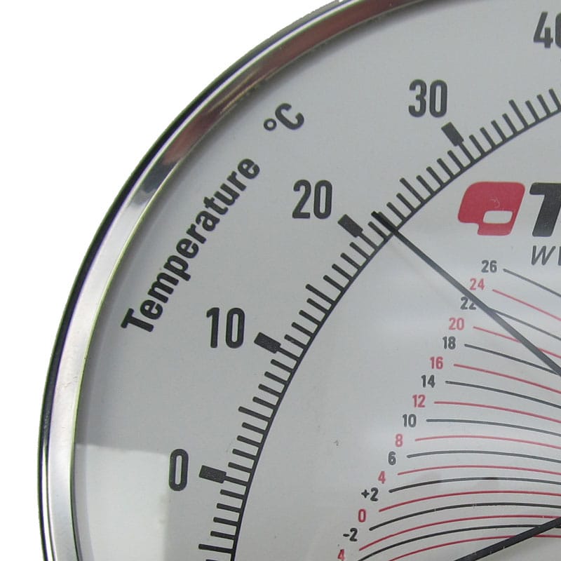 Um termômetro de superfície bimetálica integrado indica a temperatura da superfície para que a diferença entre o ponto de orvalho e a temperatura da superfície possa ser facilmente determinada.