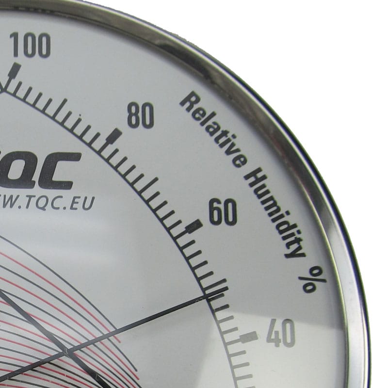 Termo-higrômetro contendo uma combinação de um higrômetro de precisão e dois termômetros bimetálicos. As escalas de umidade relativa e temperatura são dispostas de forma que seus indicadores cruzem uma série de curvas de indicação do ponto de orvalho no centro do mostrador. O ponto de orvalho pode ser lido diretamente na interseção dos dois ponteiros.