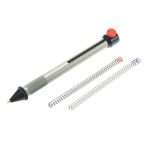 The TQC Hardness Pen is a pocket instrument for testing the hardness and wear/scratch resistance of materials such as coatings, lacquers, plastics or related products. A tungsten carbide tip is drawn over the surface with a defined constant pressure. The pressure on the tip can be changed using the slide or by changing the spring. A visual mark on the surface after use of the TQC Hardness Pen indicates a fail of the surface hardness or wear/scratch resistance. Can be used on flat and curved surfaces. There are 2 versions available, the Standard and Pro. The Standard version is supplied with 3 springs and one tip: 0-3N, graduation 10 g 0-10N, graduation 50 g 0-30N, graduation 150 g Tip 1mm The Pro version includes the above as well as: Tip 0,5mm Tip 0,75mm Pen holder with guidance wheels, which provides very stable load on tip and makes it easier to apply force. The laser-engraved scale is clearly visible on the grey background. STANDARDS According DIN 55656 Results can be obtained equal to: ISO 1518; AS 3894.4; EN 438-2, SIS 184188, and Corporated Standards Bosch, Volvo, Opel, van Laar. MODELS AVAILABLE TO ORDER