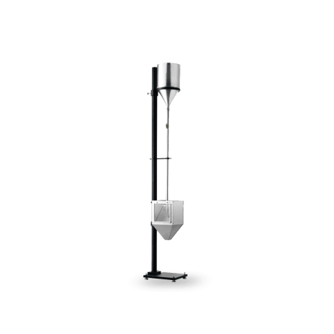 The Falling Sand Abrasion Tester is broadly used to measure the abrasion resistance of paint, lacquers and other organic coatings… Based on a design described in ASTM D 968 and other internationally recognized test standards, the Falling Sand Abrasion Tester consists of an 8″ diameter sand reservoir which includes a 60° taper funnel. Standardized abrasive particles placed in the reservoir are released to a guide tube by an abrasive flow gate key. The guide is a 36″ straight, smooth-bore tube which contains the abrasive particles as they fall. Specimens are fixed under the guide tube at a 45° angle in a receptacle that includes an opening at the bottom allowing the abrasive particles to be collected in a container. A sturdy base and support system hold the apparatus in a vertical position. AVAILABLE TO ORDER