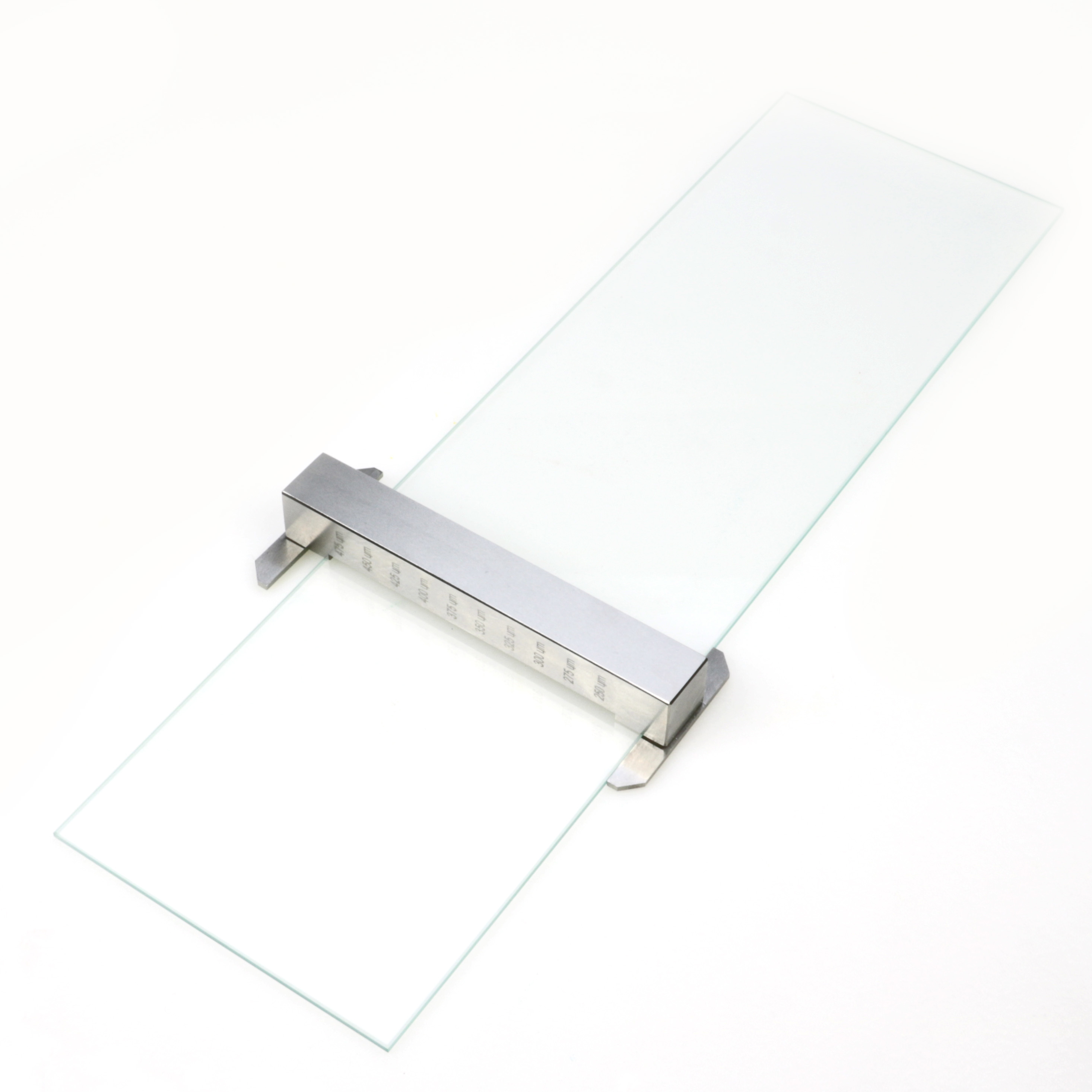 The Sag Index Applicator is especially designed for sag resistance evaluation. The total film width of 90mm is equally divided into 10 gaps, incremented in depths of 25µm. The space between each gap is 1.5mm.