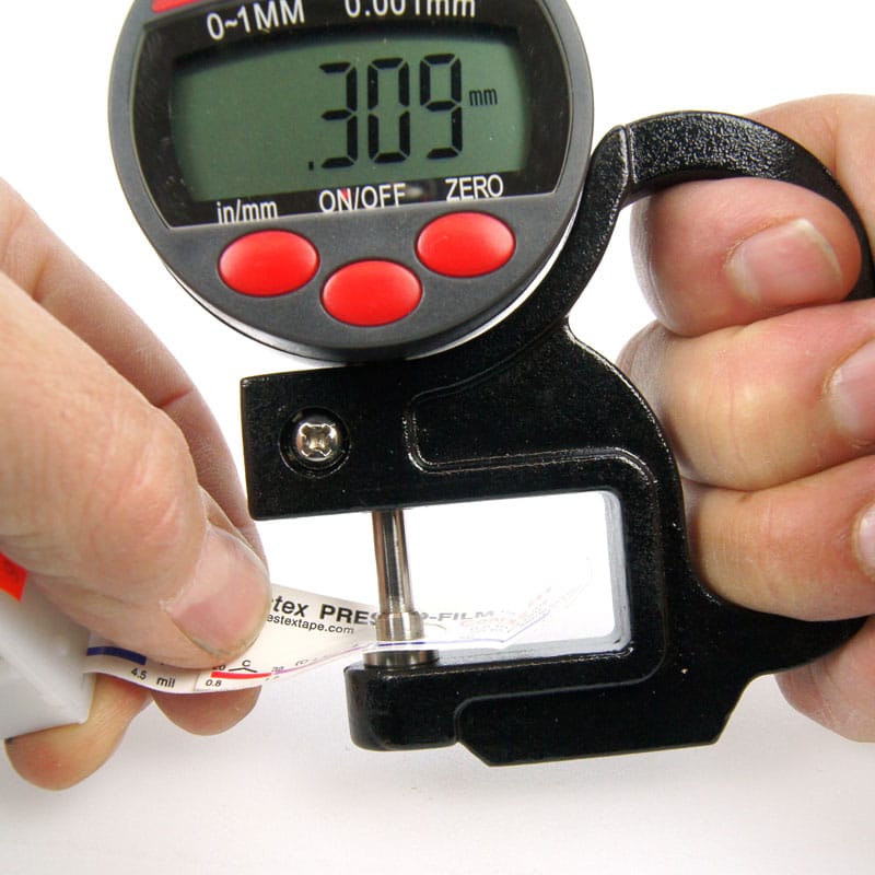 The TQC Film thickness gauge is a high precision film and foil thickness gauge, especially developed for measuring so-called “replica tapes” as Testex®, used mainly to measure the surface profile. The large clear display makes it easy to read the measurement under all conditions. Values can be displayed in either microns or inches. To minimise the influence of body/hand temperature the gauge is mounted detached from the holder. The TQC film thickness gauge operates completely according to “ISO 8503-5 Preparation of steel substrates before application of paints and related products – Surface roughness characteristics of blast-cleaned steel substrates – part 5: Replica tape method for the determination of the surface profile.” As described in this standard the closing force is 1,5 N. The gauge has to have an accuracy of 5 micron and a resolution of 1 micron. The TQC Film thickness gauge is supplied in a hardcase. AVAILABLE TO ORDER