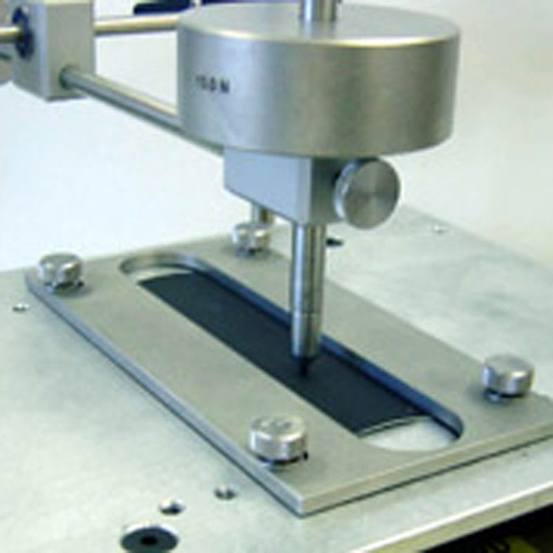 The TABER® Reciprocating Abraser is a test apparatus similar to the instrument described in test method ISO 1518. The Reciprocating Abraser is ideal for flat surfaces. With optional attachments the Reciprocating Abraser can be configured to evaluate the relative resistance or susceptibility of a material surface to physical damage such as wear and abrasion, scratch, gouge, rub, scrape, mar, etc.. The TABER Reciprocating Abraser includes a counterbalanced arm which pivots on an adjustable height gantry system. The counterweight allows the user to balance the test arm, ensuring precise test load set-up regardless of the weight of the attachment. Incorporated at the end of the arm is a tool holder to which optional attachments and weights may be secured. A sliding specimen platform moves in a horizontal, reciprocating motion under the stationary tool holder. Test parameters such as stroke length (6 – 155mm), speed (3 – 75 cycles per minute) and load (1N – 24N maximum, with included weights of 1N, 2N, 2.5N, 5N, 10N & 24N) are adjustable so optimal settings for each material can be established. To expand test loads, an optional weight support may be affixed to the top of the tool holder. This permits using auxiliary weight discs originally intended for Taber’s Linear Abraser 5750 in place of the standard weights supplied with the instrument. Weight discs are sold individually and available as 10g, 20g, 50g, 75g, 100g, 150g or 250g. The Wearaser® collet assembly comes standard with each Taber Reciprocating Abraser, along with CS-10 and H-18 Wearaser abradants. The size and shape of a pencil eraser, the Wearaser is made using the same high quality Taber abrasive media found in our Genuine Taber abrading wheels. This permits the use of equivalent abrasive materials with the Reciprocating Abraser as well as Taber’s Linear Abraser and the Taber Rotary Platform Abraser. The standard specimen table provided with the Reciprocating Abraser is 216mm x 278mm (8.5″ x 11″) with drilled tapped holes to accommodate specimen clamps or optional specimen fixing plates. To evaluate most flat specimens, specimen clamps or the optional Wide Slot Fixing Plate may be suitable. For flexible materials such as textile products, the optional Specimen Fixing Plate Kit might be used. Products with a slight contour can also be secured in place using the specimen clamps provided or a custom fixture. The Reciprocating Abraser can accommodate two additional test arm kits (sold separately), permitting up to three tests to be performed simultaneously. AVAILABLE TO ORDER