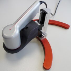 PowderTAG measures powder coating thickness before and after cure, non-contact and non-destructive. A sophisticated combination of specific powder-, infrared- and photo-thermal techniques measures the thickness of powder coatings in pre-cured and cured status, precise and reproducible. Save on powder consumption! Save on rework and reject! Improve efficiency! Improve quality! PowderTAG is a non-contact production tool, developed for use at the paint-line. Because the PowderTAG’s pulse does not need to be perpendicular, and has a small measuring spot, the PowderTAG is very suitable to accurately determine the layer thickness on small, curved or hard to reach objects. Even on wire frames or small corners and edges. A LED pointer assists in determining the correct distance and location. Due to the non-contact measuring principle parts can be tested on a slow moving line without damaging the coating. For higher line speeds it is recommended to remove the part of the line via a bypass or stop the line. FEATURES